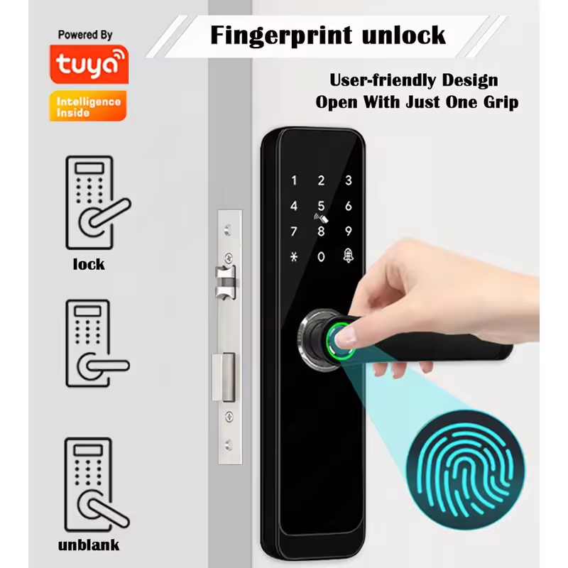 – Kiểu mở khóa : Vân tay + Mật mã + Thẻ từ + Chìa cơ + app TUYA WIFI