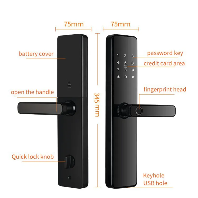 • ích hợp 6 cách mở: mật khẩu, vân tay, thẻ từ, chìa, App ttlock, Remote