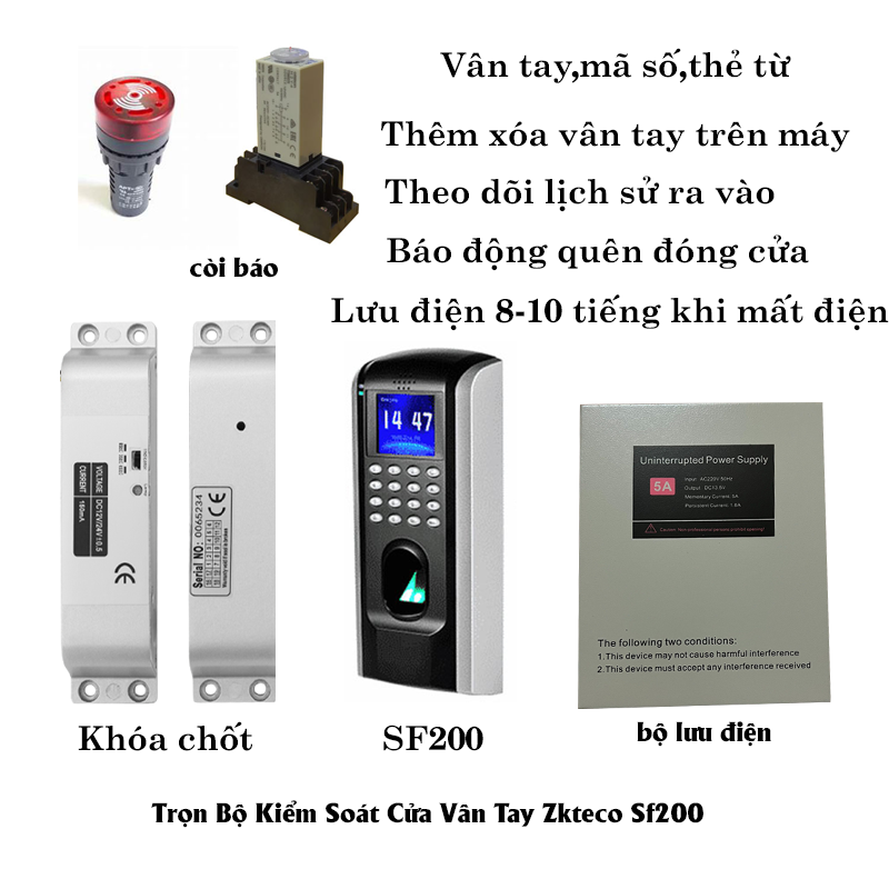 Trọn Bộ Khóa Vân Tay Cửa Cổng Zkteco SF200